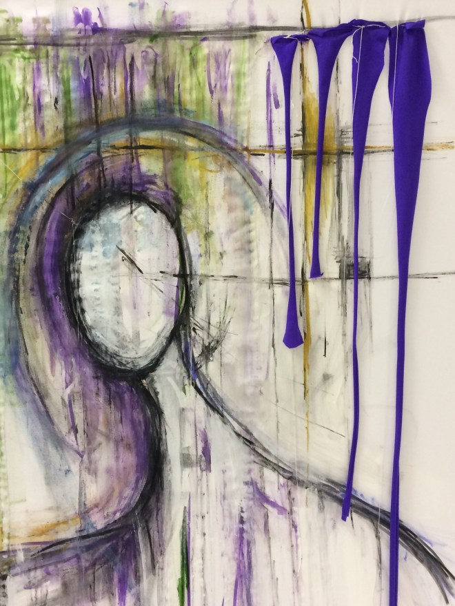 Previous ImageNext Image 1 Mixed-media on cotton fabric. Charcoal, ink, acrylic, emulsion, PVA, Lycra, thread